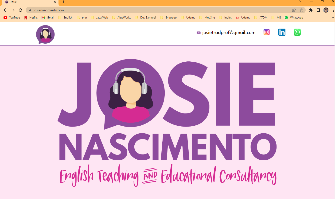Site pessoal criado especialmente para a professora de inglês Josie Nascimento. Ela buscava um site para proporcionar uma experiência de aprendizado personalizada, adaptada às necessidades e objetivos de cada aluno.