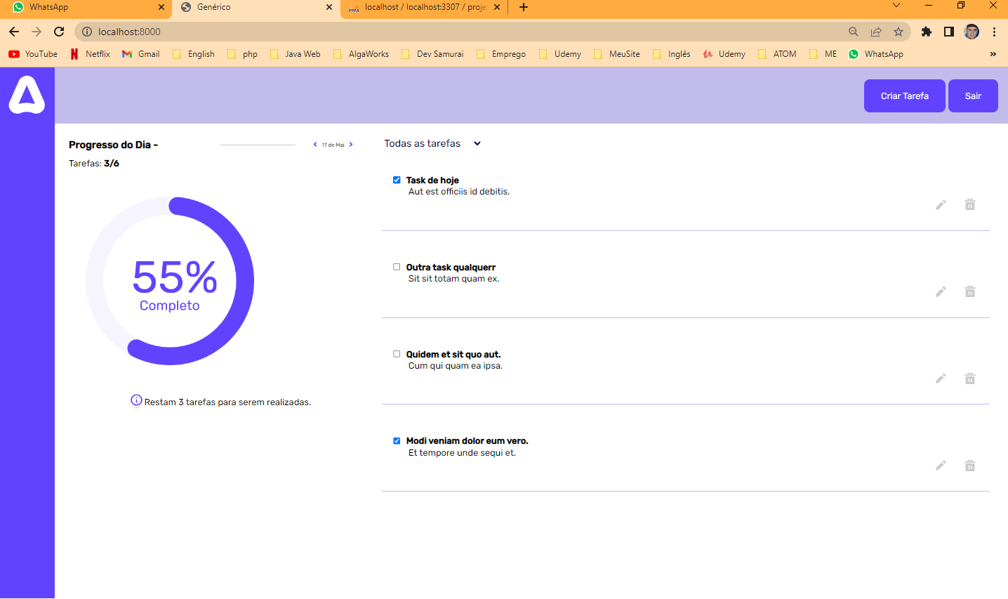 Sistema "Todo" de tarefas. Desenvolvido com Laravel e MySQL, foi criado neste projeto um sistema web com autenticação, criação e gestão das tarefas, além de um gráfico de avanço das tarefas finalizadas.